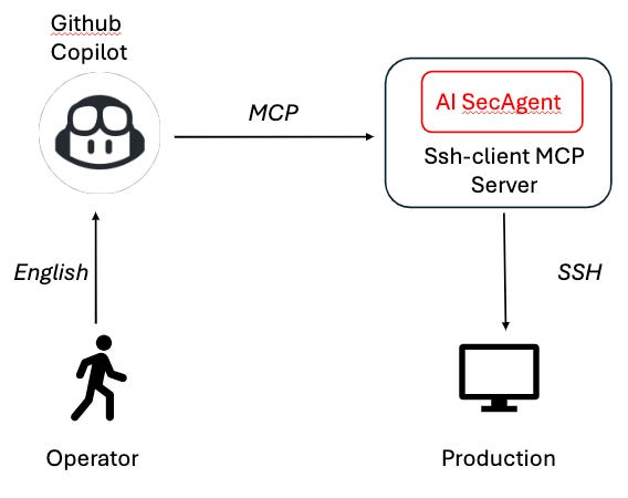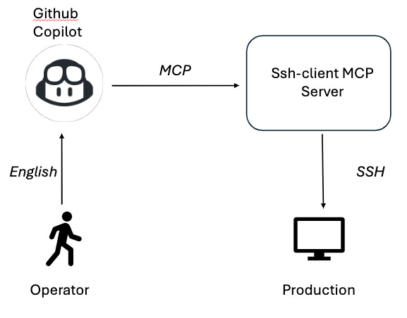 What if instead of restrictions, we empowered the operator by providing an AI-backed operator access client with an intuative experience that simultanious abstracted the nuances of the access protocol and security monitoring and measures themselves. To demonstrate this I took an Github Copilot (in VSCode) MCP client and connecting it to a ssh-client MCP Server. Which exposes the new-ssh-connection